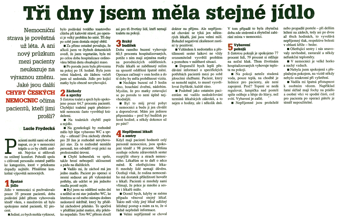 Pacienti: spokojenost s lékaři i sestrami (Právo)